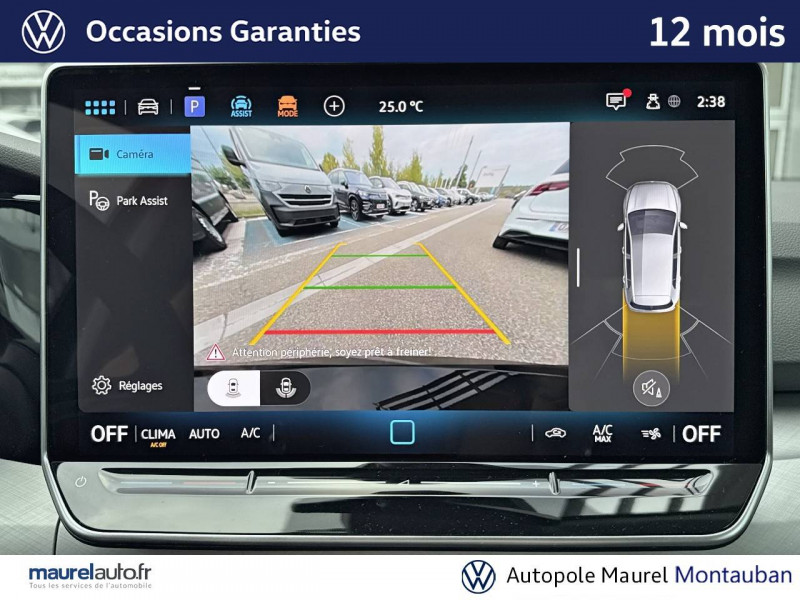 2 interfaces usb-c à l'av / 2 prises de chargement usb-c derrière l'accoudoir pour les passagers ar / 2 spots de lecture à l'av et à l'ar / accoudoir central ar rabattable avec 2 portes-boissons / accoudoir central av réglable en hauteur et en profondeur avec compartiment de rangement / activation automatique du signal de détresse en cas de freinage d'urgence / airbags de tête pour passagers av/ar / airbags frontaux av conducteur et passager (airbag passager désactivable) / app-connect sans fil affichage et contrôle via l'écran tactile du véhicule, du contenu, des fonctions et des applications compatibles présents sur le smartphone (compatibilité avec les systèmes apple carplay et android auto) / application décorative "nature cross brushed" pour tableau de bord et les revêtements de portes av / appuis lombaires réglables à l'av / avertisseur sonore et lumineux pour ceintures non attachées av/ar / câble adaptateur usb-c vers usb-a / câble de recharge pour borne domestique wallbox ou borne publique compatible (11kw) (mode 3, type 2/type 2) / câble de recharge pour prise de courant domestique (1,8kw) (mode 2, type 2) / cache-bagages amovible / caméra de recul "rear view" caméra de recul avec visualisation de la zone située ar du véhicule sur l'écran de la radio ou de la radionavigation / ceintures de sécurité automatiques av 3 points à enrouleur, réglables en hauteur, avec prétentionneurs / cerclage chromé des commandes des vitres, de réglage des rétroviseurs et des aérateurs / climatisation "air care climatronic" 3 zones et filtre anti-allergène et éléments de commandes à l'ar / commande vocale (ida) avec amplificateur de voix électronique / correcteur électronique de trajectoire esp, amplificateur de freinage d'urgence, antiblocage des roues abs, blocage électronique de différentiel eds, répartiteur électronique de freinage ebv, antipatinage électronique asr, régulateur électronique de couple msr et assistance au contrebraquage / digital cockpit pro : combiné d'instruments digital avec écran digital haute résolution de 10,25" / ecall : appel d'urgence manuel ou automatique / eclairage à led de la plaque d'immatriculation ar / eclairage d'ambiance 10 couleurs / eclairage d'ambiance extérieur poignées de portes éclairées et éclairage périmétrique avec projection du logo / ecrous antivol / essuie-glace ar intermittent avec lave-glace / fatigue détection : système de détection de fatigue du conducteur qui analyse le comportement du conducteur et recommande un temps de repos par l'apparition d'un message visuel et sonore / feu ar de brouillard d'un côté, feux de recul des deux côtés / frein de stationnement électromécanique avec fonction d'immobilisation en pente "auto hold" et assistant de démarrage en côte / front assist - système de surveillance périmétrique avec fonctions de freinage d'urgence en ville et détection des piétons / indicateur de température extérieure avec avertisseur de gel / interface téléphone bluetooth / jantes en alliage léger 17" "nottingham" avec pneumatiques 225/45 r17 / kit de dépannage : compresseur 12 v et produit d'étanchéité de pneu / lane assist: assistant de maintien dans la voie / mesures de protection des piétons supplémentaires / miroirs de courtoisie éclairés dans les pare-soleils / oeillets d'arrimage isofix (dispositif pour fixation de 2 sièges-enfants sur la banquette ar) / pack confort avec park assist pro - système de verrouillage et de démarrage sans clé?keyless access' avec safelock, - alarme antivol - assistant aux manoeuvres de stationnement ?park assist pro' - techologie car2x / pack 'eclairage & visibilité' - régulation automatique des feux 'light assist' / pack visibilité - allumage automatique des feux avec fonctions "coming home" et "leaving home" - capteur de pluie avec essuie-glace automatique / pare-chocs, boîtiers de rétroviseurs extérieurs et poignées de portes dans la couleur carrosserie / park pilot : système d'aide au stationnement av/ar avec signaux sonores et visualisation de la distance des obstacles sur l'écran / peinture unie / pommeau du levier de vitesse cuir / préparation pour "vw connect" et "vw connect plus" / prise 12 v dans le coffre / projecteurs 100% led (projecteurs, feux de jour av, feux ar) / réglage du site des phares / rétroviseur intérieur à réglage jour/nuit automatique / rétroviseurs extérieurs à réglage, rabattement et dégivrage électriques, avec fonction mémoire / revêtement de porte et latéral en feuille de mousse et tissu / sellerie en tissu "maze" / service d'appel d'urgence (inclus 10 ans et disponible indépendamment de l'inscription dans le système d'infotainment) / side assist (assistance changement de voie et de sortie de stationnement) / sign assist: reconnaissance des panneaux de signalisation et affichage sur le 'digital cockpit' et l'écran du système de radionavigation / système de freinage anti multicollision: ce dispositif freine automatiquement le véhicule après un premier choc afin de limiter le risque de multicollision / système de navigation & infotainment "discover" avec "services de streaming et radio via internet" via carte esim intégrée, radio 7 hp et écran couleur tactile 12,9" avec projection de la cartographie dans l'écran du "digital cockpit pro" / système de verrouillage et de démarrage sans clé "keyless access" / système start/stop avec dispositif de récupération de l'énergie au freinage / tapis de sol av/ar / verrouillage centralisé avec télécommande à fréquence radio par clé rétractable / xds : système agissant comme un différentiel autobloquant électronique permettant une meilleure motricité en courbe grâce à une répartition optimale de la puissance et du couple sur les roues av